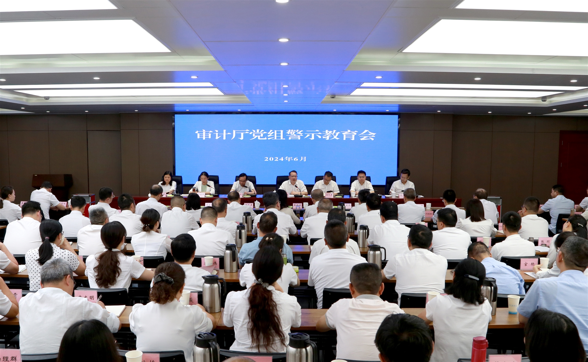 會議強調,要堅持以警示教育深化紀律建設,始終做到警鐘長鳴。突出以案促學,堅持原原本本學、逐章逐條學習《中國共產黨紀律處分條例》,用黨紀校正思想和行為。注重教育實效,把紀律教育、警示教育與黨性教育、廉潔文化教育貫通起來,豐富創新教育形式,增強吸引力、滲透力和感染力。堅持綜合施策,層層壓實責任齊抓共管,推動警示教育制度化建設,涵養家教家風。強化擔當作為,堅持高標準高質量推進黨紀學習教育,提升審計干部依規依紀依法履職水平,確保在學習和掌握黨的紀律上見實效,在維護和執行黨的紀律上見實效,充分發揮審計監督的獨特作用。