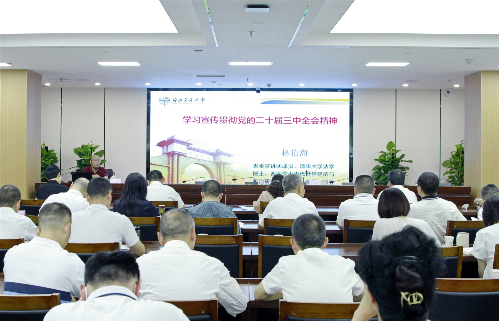 8月26日,省國動辦舉行了學(xué)習(xí)貫徹黨的二十屆三中全會精神省委宣講團(tuán)報告會。省委宣講團(tuán)成員、西南交通大學(xué)林伯海教授作宣講報告,省國動辦機(jī)關(guān)全體黨員干部、直屬單位班子成員及部門負(fù)責(zé)人、退休干部代表等共60余人參加報告會。