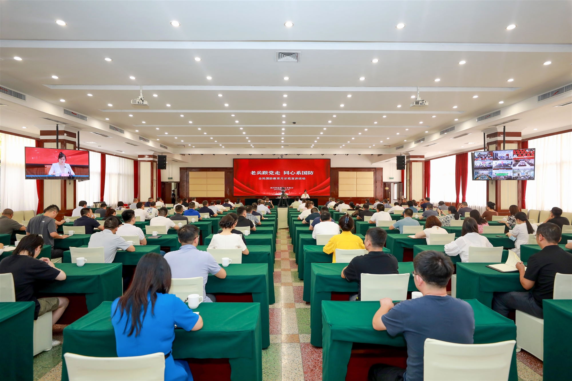 為深入學習宣傳貫徹習近平新時代中國特色社會主義思想,喜迎中華人民共和國成立75周年,貫徹落實習近平總書記給四川省革命傷殘軍人休養院全體同志重要回信精神和全國退役軍人工作會議精神,大力弘揚偉大抗美援朝精神,進一步強化全省退役軍人事務系統黨員干部和廣大退役軍人“心系國防、強國有我”的全民國防意識,9月23日,四川省退役軍人事務廳舉辦“全民國防教育月”暨“老兵跟黨走、同心系國防”示范宣講活動。退役軍人事務廳黨組書記、廳長熊隆東出席活動。