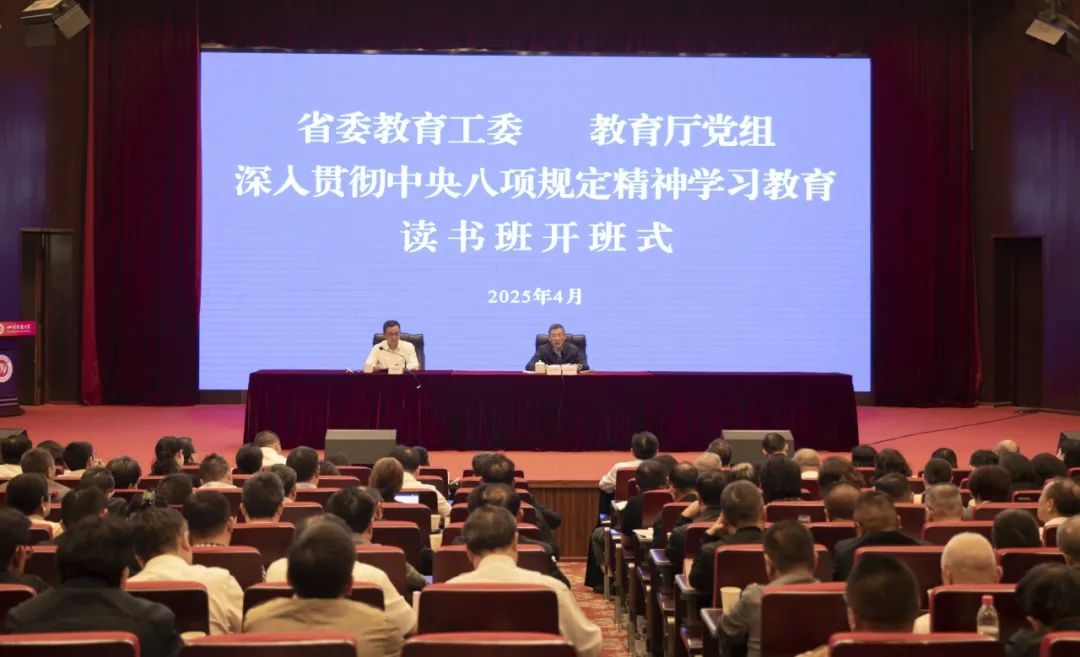 4月15日,省委教育工委、教育廳黨組舉辦深入貫徹中央八項規定精神學習教育專題讀書班。省委教育工委書記,教育廳黨組書記、廳長余孝其主持開班式并講話。