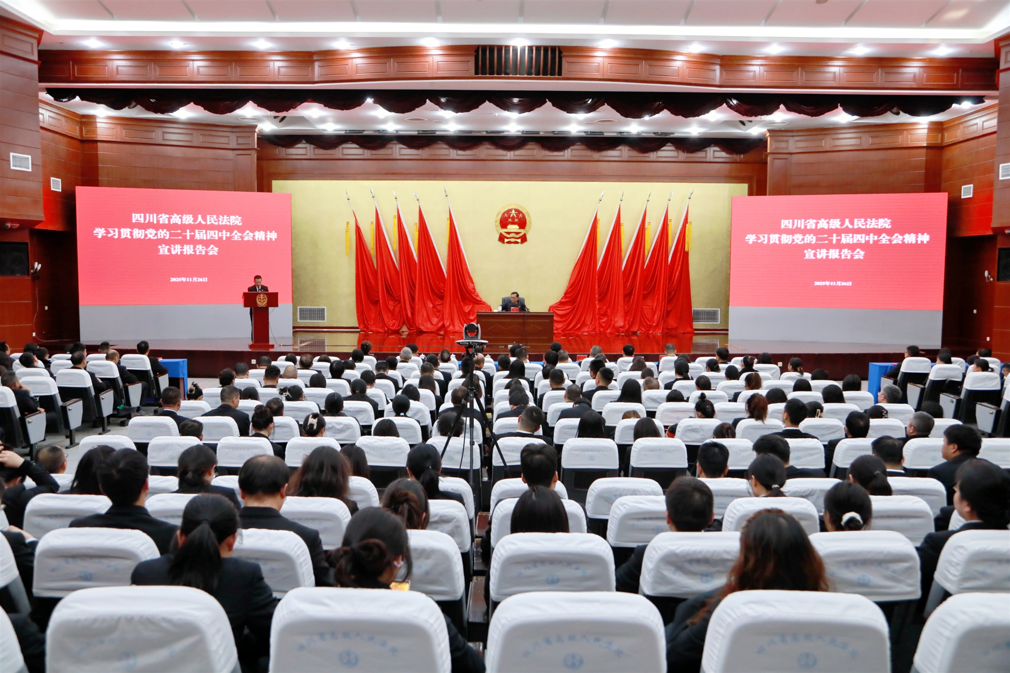 近日,省高級(jí)人民法院舉行學(xué)習(xí)貫徹黨的二十屆四中全會(huì)精神宣講報(bào)告會(huì),邀請(qǐng)省委宣講團(tuán)成員作專題輔導(dǎo)。報(bào)告會(huì)以視頻形式召開(kāi),全院中層以上領(lǐng)導(dǎo)干部、干警代表及離退休干部代表共四百余人參加。