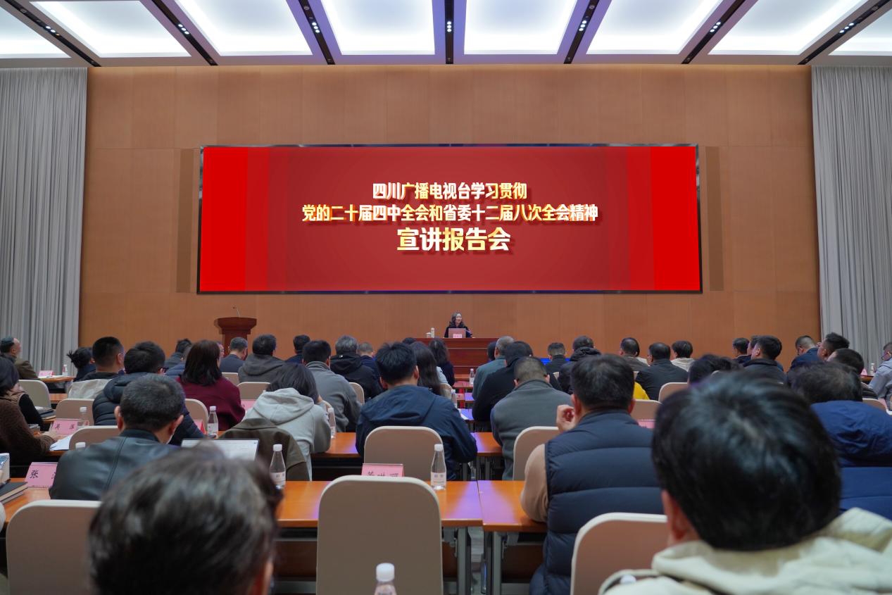 12月4日,四川廣播電視臺舉辦學(xué)習(xí)貫徹黨的二十屆四中全會和省委十二屆八次全會精神宣講報告會,邀請中共四川省委黨校、四川行政學(xué)院黨建教研部教授、碩士生導(dǎo)師潘傳輝作專題宣講。在家臺黨委成員,臺長助理、行政總監(jiān)、編務(wù)總監(jiān)、運營總監(jiān),各單位(部門)正副職及各黨支部書記、首席、助理,團委書記、青年理論學(xué)習(xí)小組組長,以及離退休黨員代表等180余人參加學(xué)習(xí)。