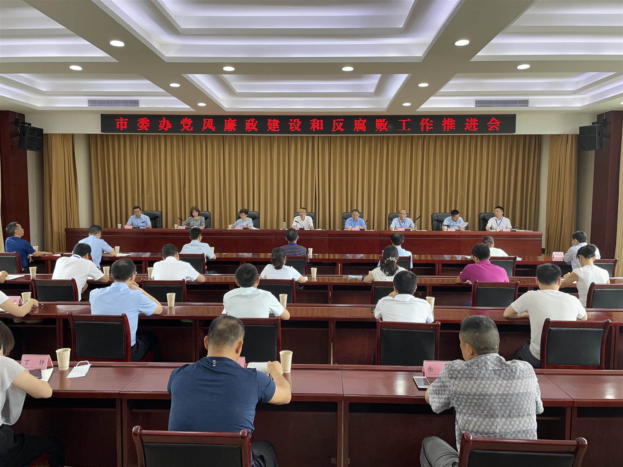 會議學習了《中共中央關于加強對“一把手”和領導班子監督的意見》《關于切實糾治違規操辦“升學宴”“謝師宴”問題的通知》,通報了上半年的黨風廉政建設和反腐敗工作,并從從嚴抓好政治建設、從嚴抓好責任落實、從嚴抓好教育管理、從嚴抓好制度執行和從嚴抓好作風建設五個方面安排部署了下半年的黨風廉政建設和反腐敗工作。會議還傳達學習了省應對新冠肺炎疫情應急指揮部調度會議精神和市委應對新冠肺炎疫情工作領導小組會議精神,并就當前市委大院疫情防控相關工作進行了安排。