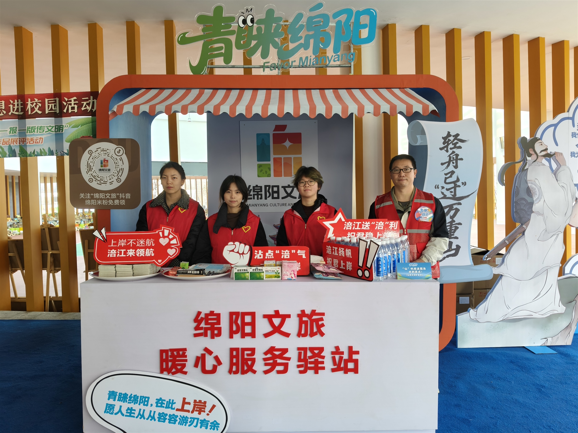 2025年度國家、全省公務員考試期間,綿陽市文廣旅局聯動市委組織部、團市委、市商務局等多部門支持,組織青年黨員志愿服務隊,在考點外精心搭建“青睞綿陽”主題服務驛站,將黨性實踐、考生服務與城市推介巧妙融合,打造出黨建引領文旅服務、鮮活展示城市形象的示范樣本。