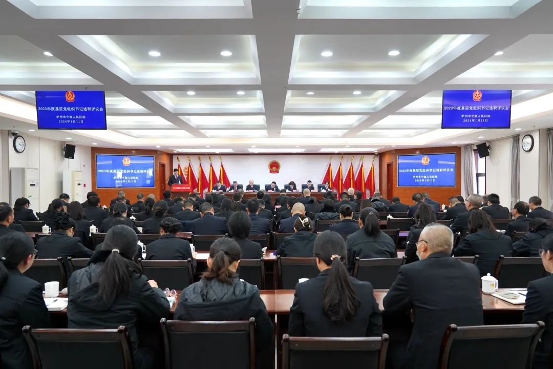 為進一步壓實基層黨組織書記抓黨建工作主體責任,推動基層黨建工作提質增效,近日,瀘州中院召開2023年度基層黨組織書記述職評議會。黨組書記、院長李俊以及其他院領導、各黨支部書記、全體黨員干警參會,黨組成員、機關黨委書記曾蓮主持會議。
