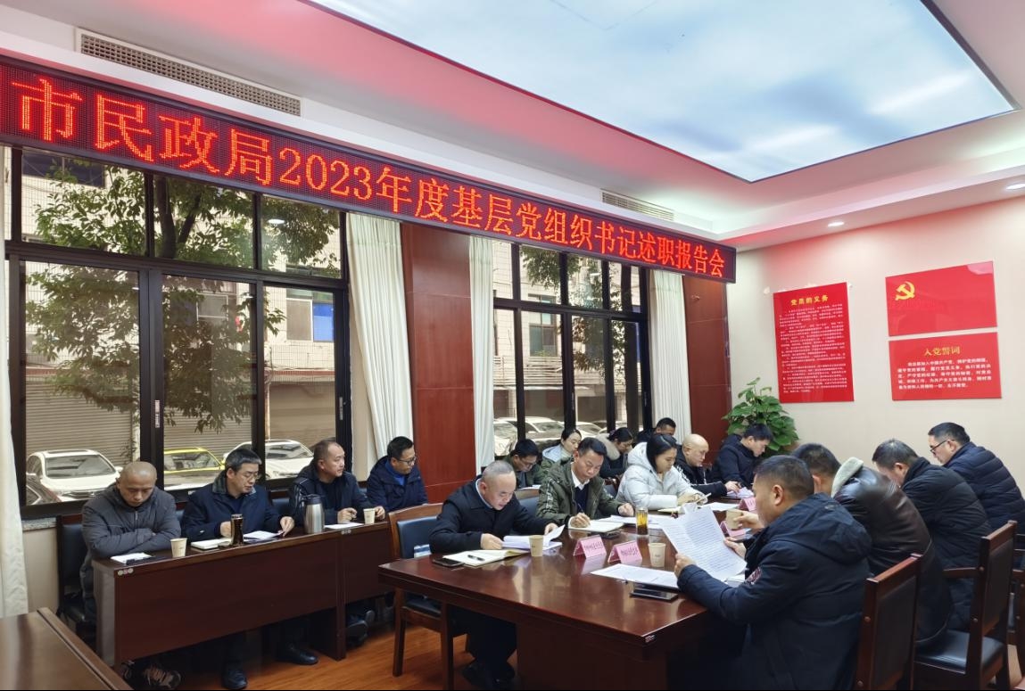 1月22日,瀘州市民政局開展2023年度基層黨組織書記述職報告會。瀘州市民政局黨組成員、機關黨委書記文中信主持會議并點評。