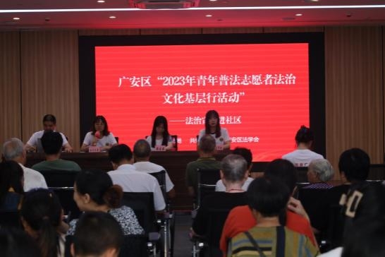 7月25日上午,廣安市廣安區(qū)司法局、團(tuán)區(qū)委、區(qū)法學(xué)會(huì)在廣安區(qū)白塔社區(qū)共同開(kāi)展了以“美好生活民法典相伴”為主題的“2023年青年普法志愿者法治文化基層行”活動(dòng),組織青年普法志愿者送法進(jìn)社區(qū),面對(duì)面開(kāi)展民法典宣講活動(dòng)。