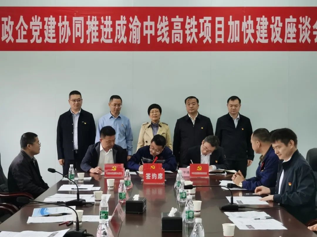 成渝中線鐵路施工標準高、技術難度大、質量控制嚴,為保障成渝中線鐵路高標準、高質量建設,中鐵二十一局成渝中線二分部黨支部、資陽市經濟發展研究中心黨支部、樂至縣發展改革局機關黨支部共同簽訂了《政企黨建聯動共建協議》,構建黨政、社會、企業、工地“四位一體促民生”體系,在機制聯動、組織聯建、實事聯辦、發展聯促方面,形成“四聯”黨建合作格局。