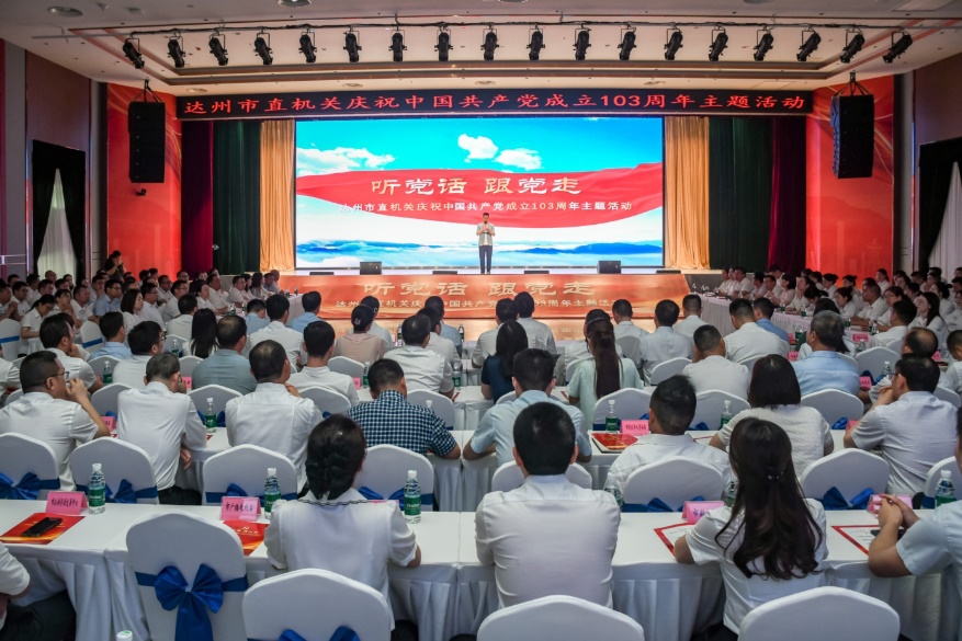 為慶祝中國共產黨成立103周年,進一步激勵達州市直機關各級黨組織和廣大黨員狠下“七干”之功、昂揚爭先之志,引導機關黨員干部牢記初心,勇擔使命,奮力實現“重振巴渠雄風、重塑大市榮光”,近日,“聽黨話、跟黨走”——達州市直機關慶祝中國共產黨成立103周年主題活動在市工人文化宮舉行。