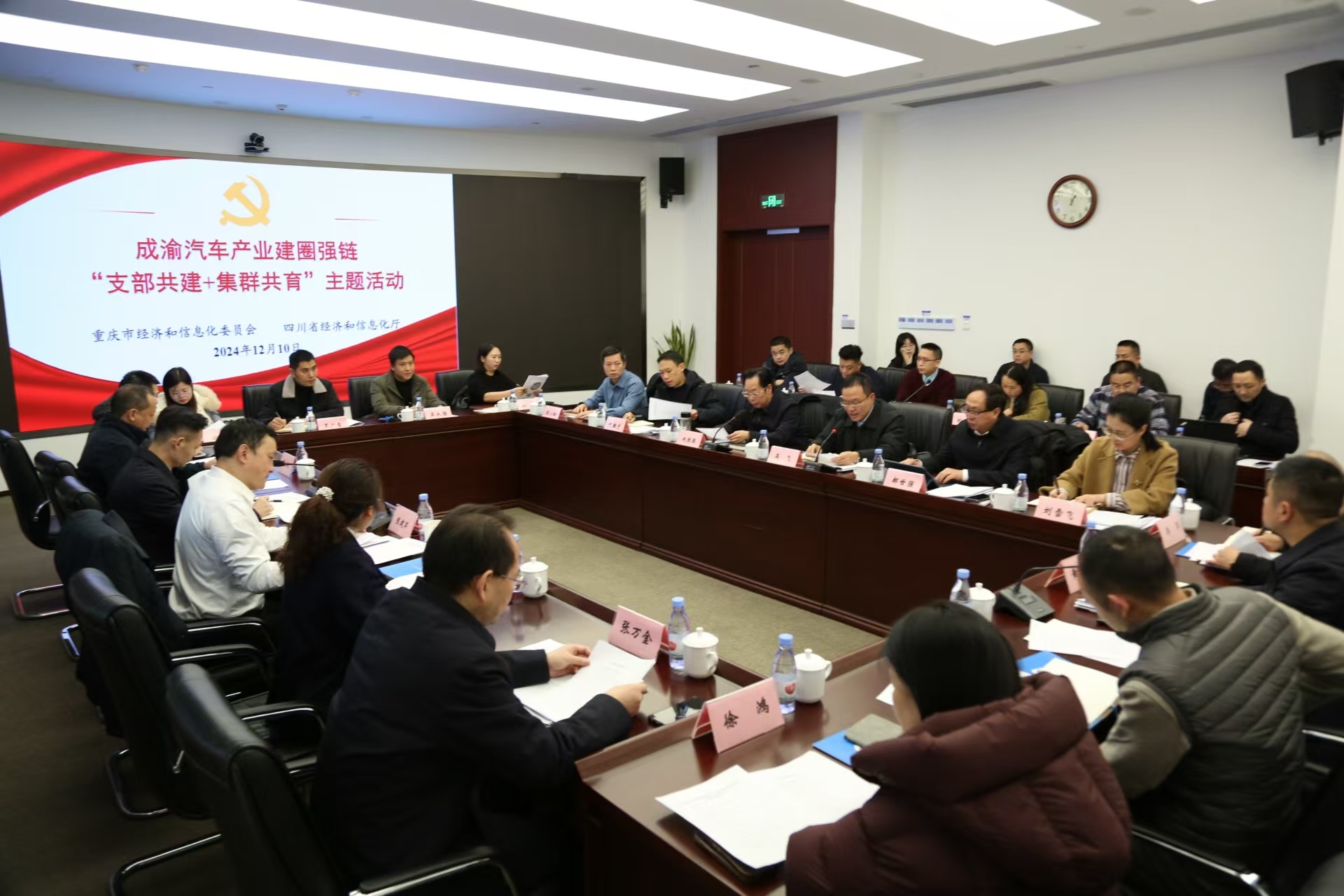 為進一步深化川渝經信機關黨建引領產業發展結對共建機制,推動渝廣汽車產業協同發展,12月10日,廣安市攜手川渝經信部門在重慶聯合舉辦成渝汽車產業建圈強鏈“支部共建+集群共育”主題活動。廣安市二級巡視員趙勝強出席活動,市經濟信息化局、鄰水縣以及9戶汽車零部件企業相關負責人參加活動。