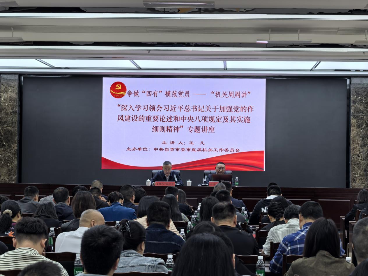 近日,自貢市委市直機(jī)關(guān)工委舉辦爭做“四有”模范黨員“機(jī)關(guān)周周講”專題講座,聚焦習(xí)近平總書記關(guān)于黨的作風(fēng)建設(shè)重要論述及中央八項規(guī)定精神,邀請省委黨校專家授課,市直機(jī)關(guān)180余名黨員干部參加學(xué)習(xí)。