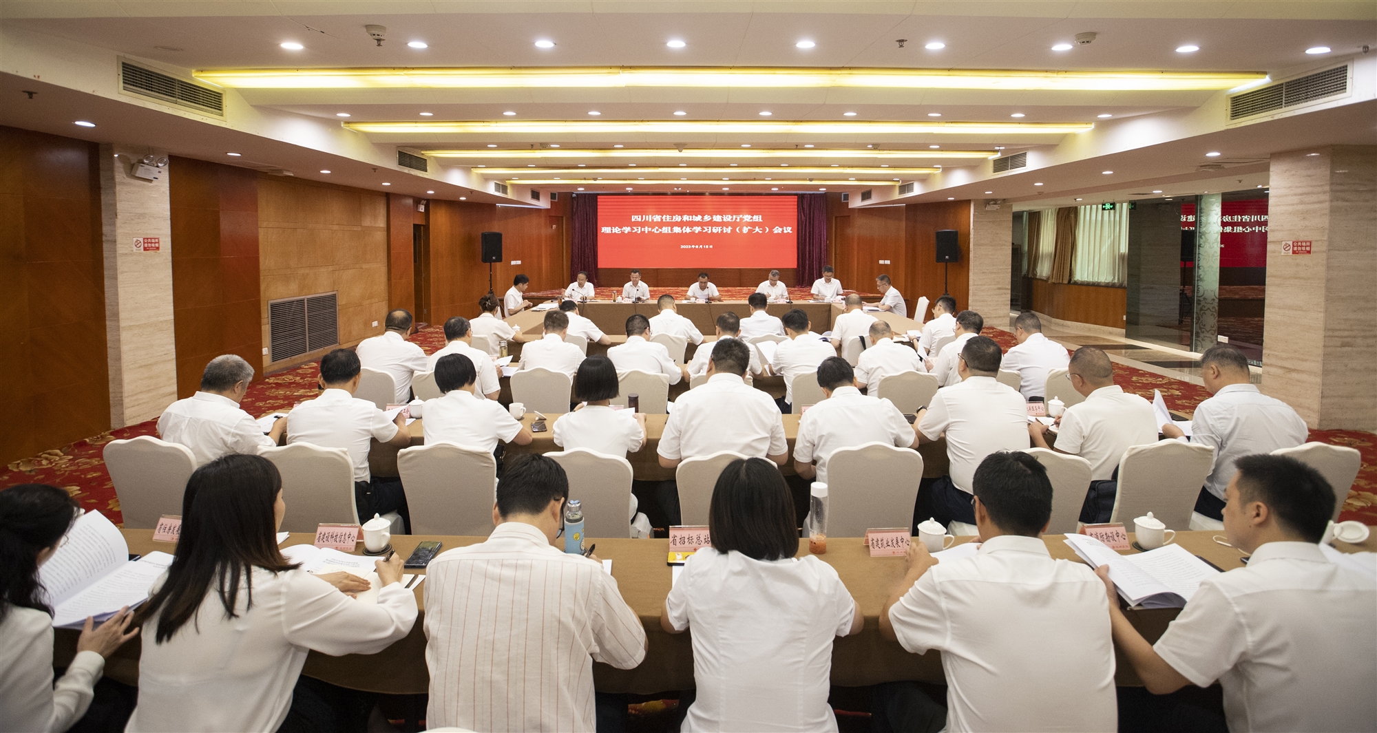 8月14日至15日,住房城鄉建設廳組織黨組理論學習中心組(擴大)成員赴廣漢三星堆博物館,沿著習近平總書記四川足跡開展實地研學,并進行專題學習研討。