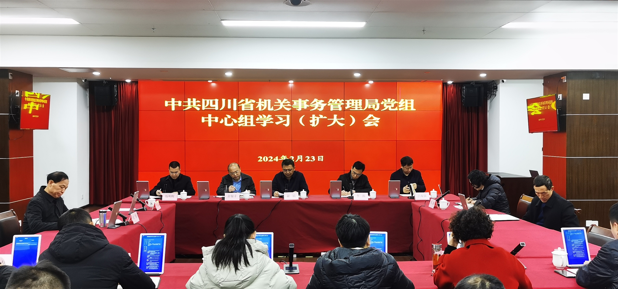 2月23日,省機關(guān)事務(wù)管理局召開黨組理論學(xué)習(xí)中心組學(xué)習(xí)(擴大)會。局黨組書記、局長謝民主持會議。局黨組成員,二級巡視員,駐局紀(jì)檢監(jiān)察組,機關(guān)處(室)、局屬單位負責(zé)同志參加。