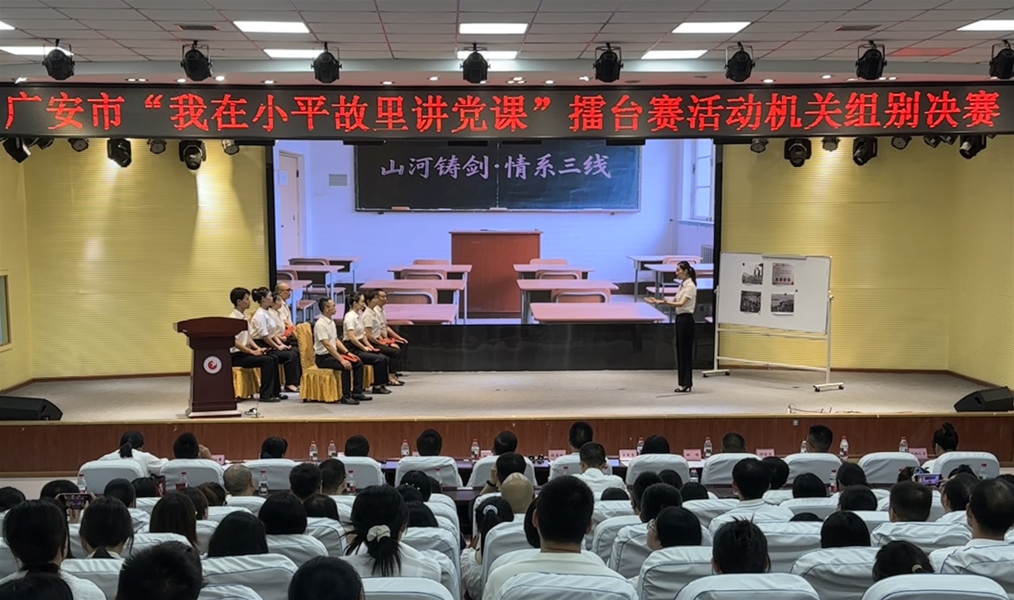 8 月 21 日,由廣安市委組織部、市委市直機關工委聯合主辦的 “我在小平故里講黨課” 擂臺賽機關組別決賽,在廣安區東方小學舉行。活動以賽促學、以講鑄魂,引導機關黨員干部堅定理想信念、筑牢初心使命,激發干事創業熱情。