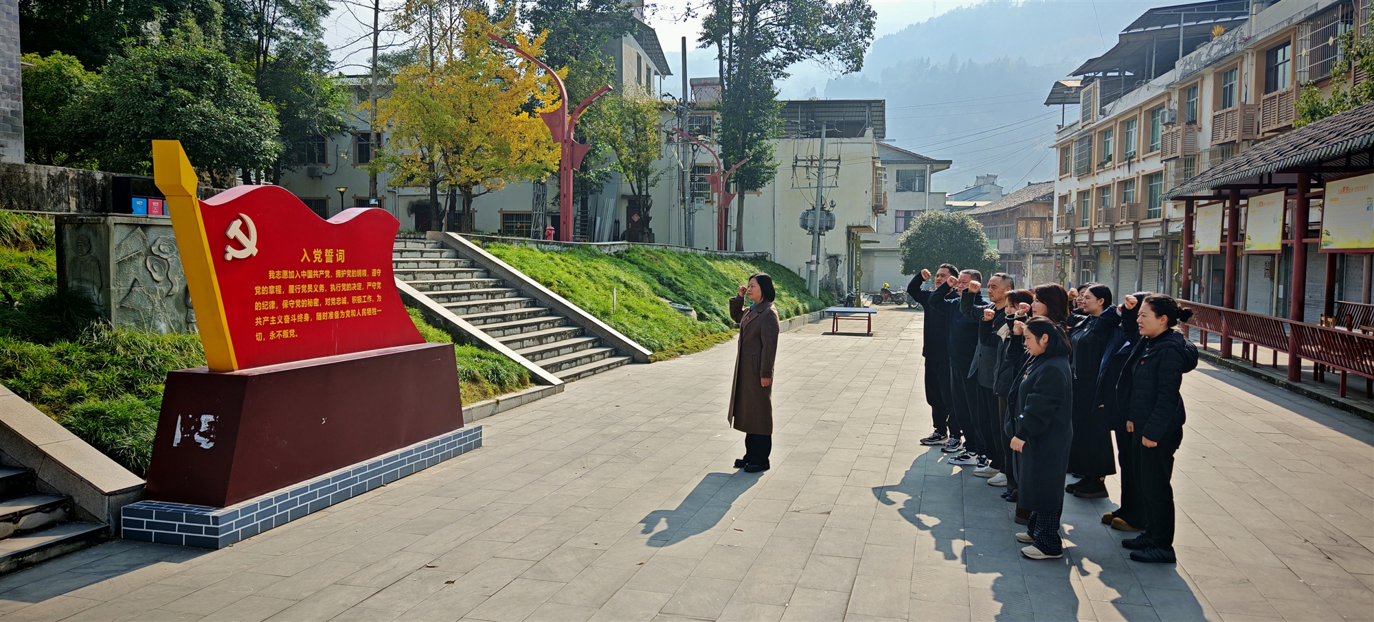 抵達北川后,黨員們首先來到北川地震遺址紀念館。置身紀念館,在莊嚴肅穆的氛圍中,同志們紛紛駐足,肅立默哀,深切緬懷遇難同胞。隨后,一行人來到北川紅軍長征紀念館,瞻仰烈士遺跡,感受烽火年代紅色無私奉獻、無畏犧牲的偉大革命精神。在鮮紅的黨旗前,支部副書記帶領大家面向黨旗再次重溫入黨誓詞,鏗鏘有力的誓言響徹紀念館廣場,既是對革命先烈的告慰,更是對初心使命的莊嚴承諾。